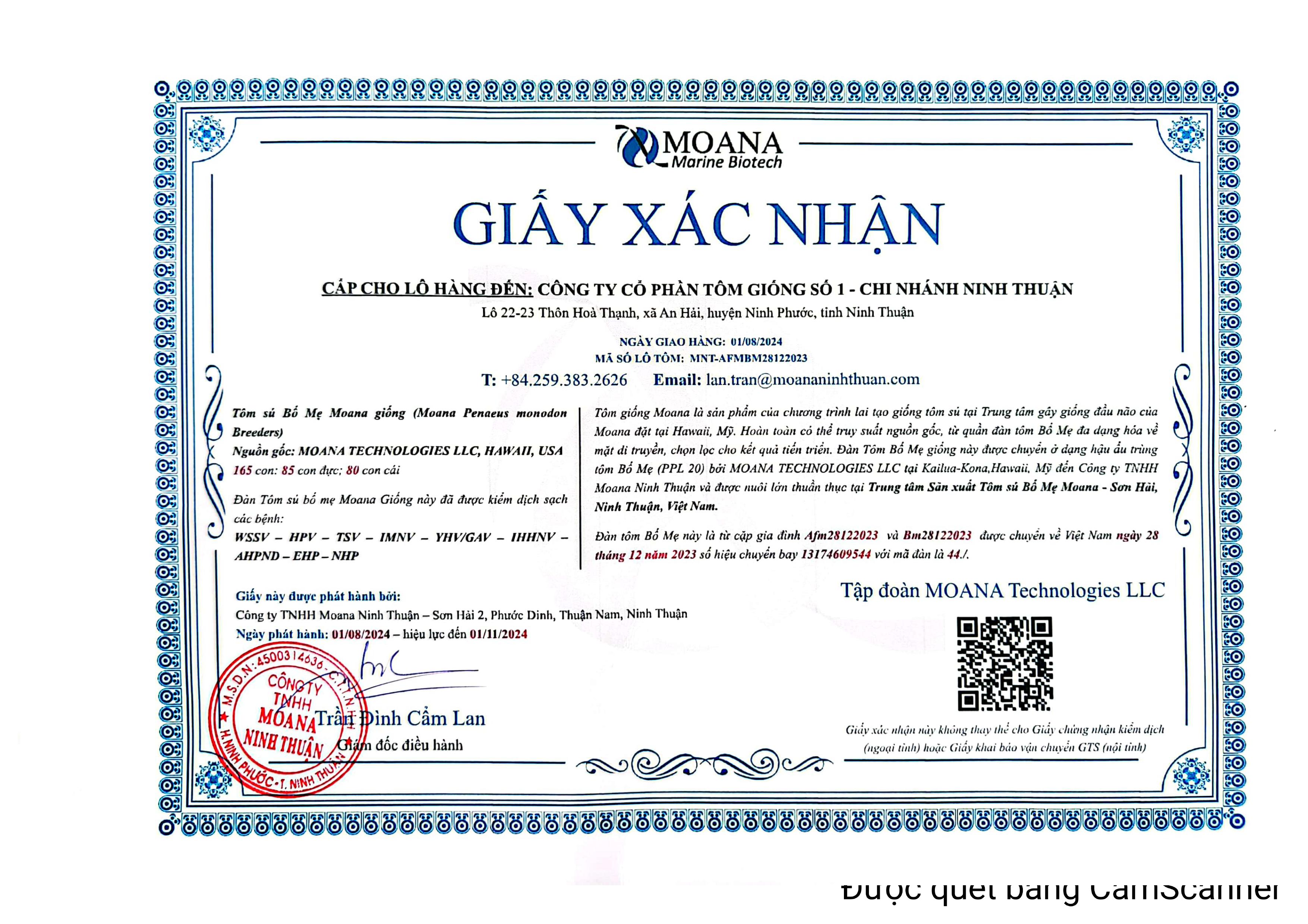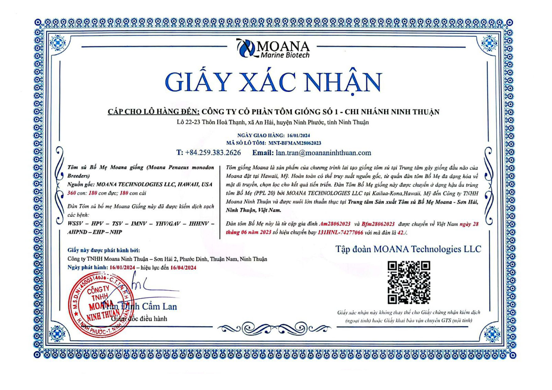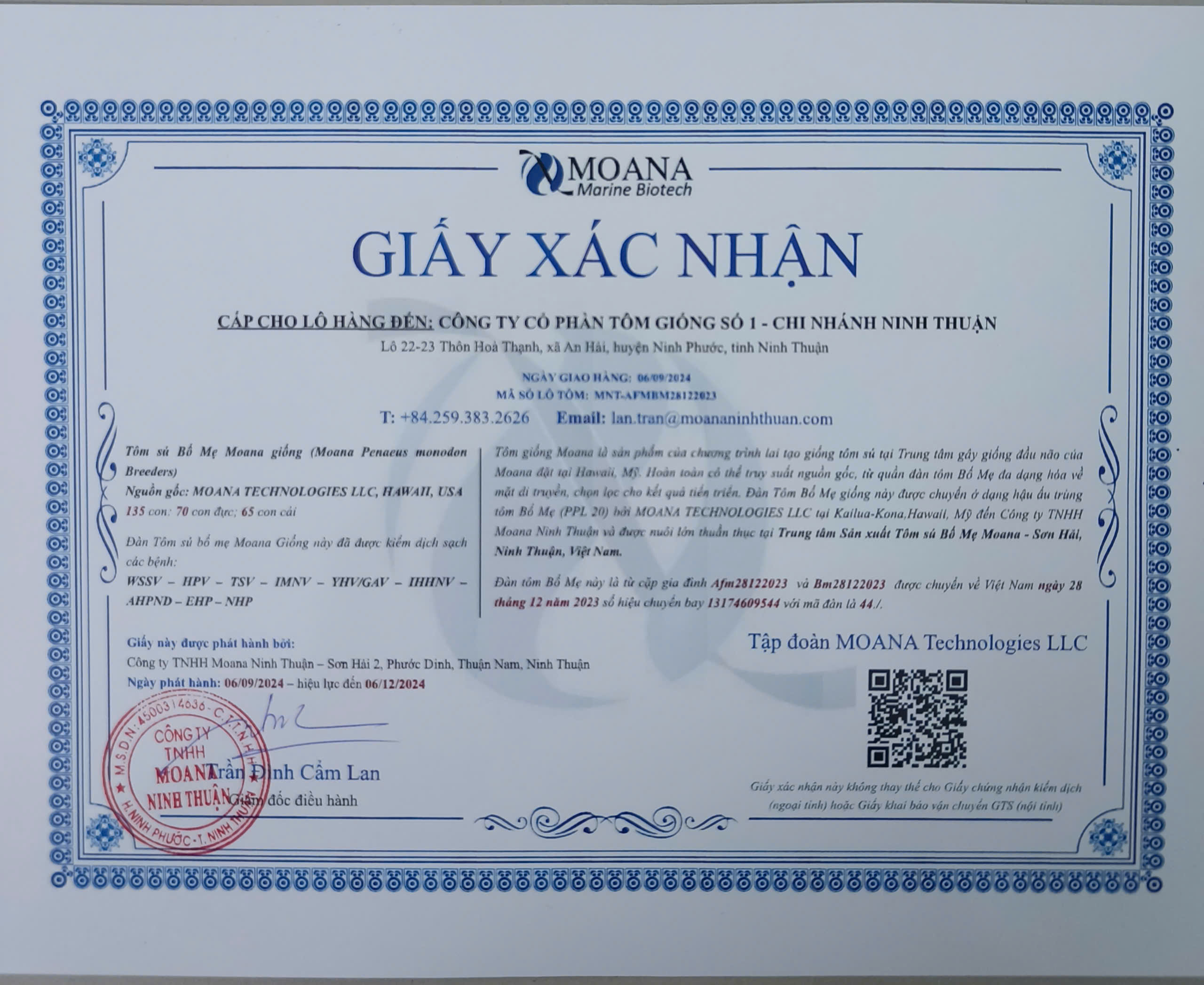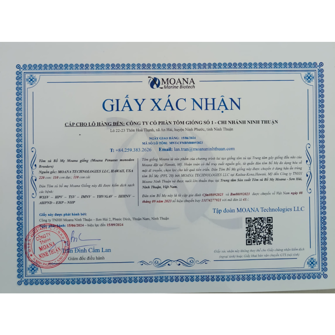 Giấy Xác Nhận Tôm Bố Mẹ Moana 2024
