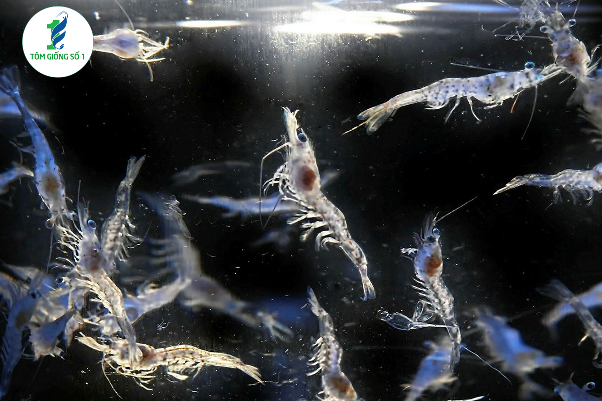 - Những con tôm giống linh hoạt và khỏe mạnh thường phân bố đều trong bể nuôi, có hình dáng thon dài và ruột đầy thức ăn, chứng tỏ khả năng bắt mồi tốt.