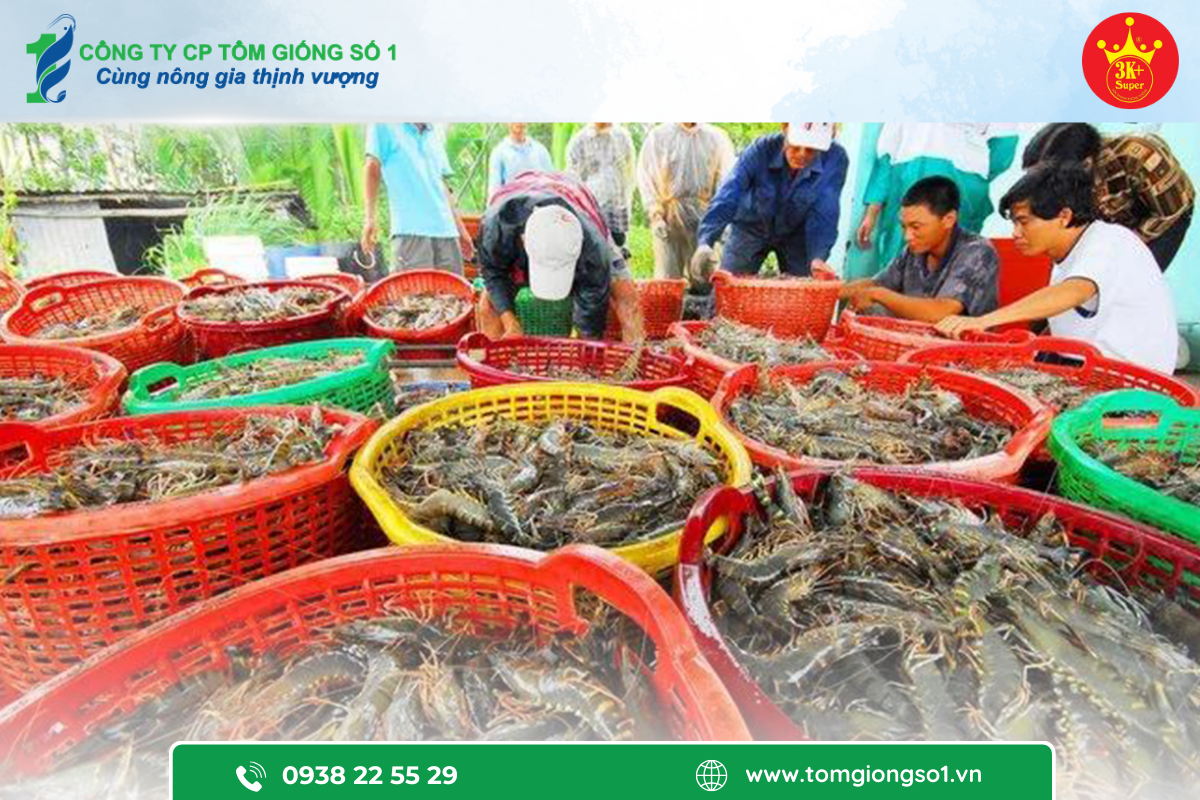 Thu hoạch tôm từ Tôm Giống số 1